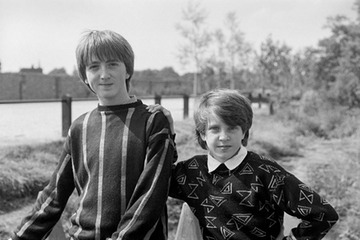 1986. On the south side of the park near the site of the old ropeworks. Louise Whitton on the right
