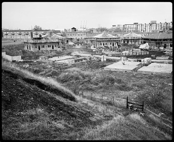 1984. View from the Mudchute of the Comben Homes Ltd. estate under construction at Frair’s Mead, looking north-east