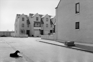 1987. Finished housing on the Maconochies Wharf self-build housing estate, later renamed Pointers Close. The dog 'Trigger' was owned by self-builders Karen and Billy Bohle.