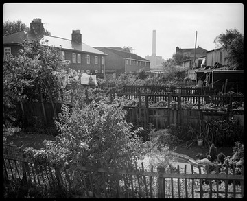 1984. Back gardens in Chapel House Street, looking south towards Deptford Power Station