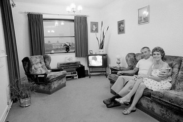 1984. John and Buddie Penn in the living room of their GLC-built flat at 24 Empire Wharf Road