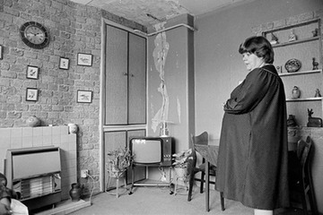 1985. Flat  29, Cubitt House, Roffey Street,  with evidence of structural damage caused by pile driving nearby in the East Ferry Road area