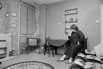 1985. Flat 29, Cubitt House, Roffey Street, with evidence of structural damage caused by pile driving nearby in the East Ferry Road area