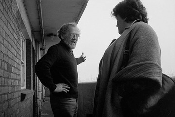 1985. Welfare Rights worker, Pat Gibbs, talking to a resident of Cubitt House, Roffey Street