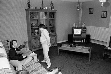 1985. Mother and children in their council-owned maisonette in Harbinger Road