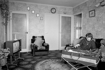 1985. Flat  29, Cubitt House, Roffey Street,  with evidence of structural damage caused by pile driving nearby in the East Ferry Road area