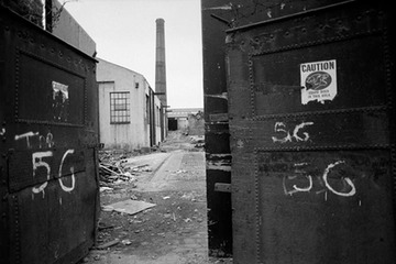 1983. Westferry Road entrance to Express Wharf, later redeveloped as housing