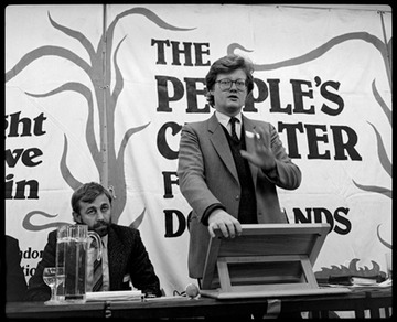 1986. Meeting concerning ‘The People’s Charter for Docklands’, a petition originally drawn up by local community groups in 1984 and delivered to parliament by the 'People’s Armada'
