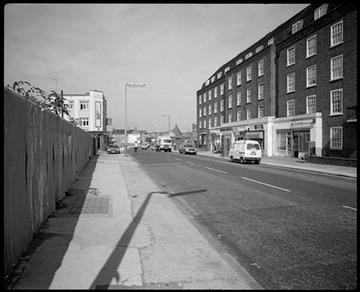 Bottom of Westferry Road, looking west, with Arethusa House on the right and the site of the former Westwood’s Engineering on the left. The ‘Vulcan’ is in the background