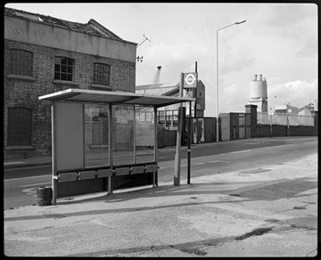 1985. View of the depot from the east side of Westferry Road, opposite the 'City Arms' pub