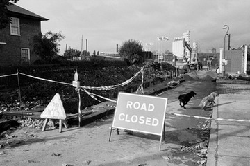 1984. View from East Ferry Road of the construction of new housing at Clipper's Quay on the south side of Millwall Docks, with McDougall's grain silos in the distance