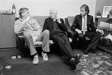 Cardinal Hume visiting St. Edmund’s Catholic ChurchYouth Employment Project - talking to project workers Jim McReady and Mike Fearney