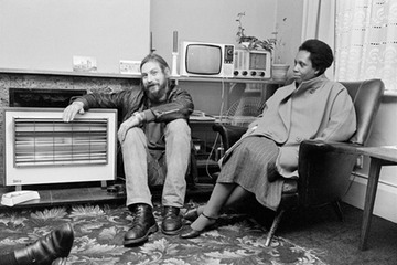 During Cardinal Hume’s visit to St. Edmund’s Catholic Church Youth Employment Project: on left, local resident, on right, social worker