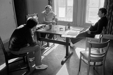 St. Edmunds Community Centre: unemployment and welfare rights campaign workers, including (facing, centre) Jim Sunderland who, sadly, was killed whilst crossing Westferry Road in the 1990s. Damien King, who attended the St. Edmunds youth club, says ‘he was a genuinely nice man who knew how to make the space invaders and missile command machines give us free plays without putting money in - quite an impressive ability to a child growing up in the 1980s!’