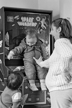 Mother and toddler group. Video games such as 'Space Invaders' were quite a new phenomenon in 1985