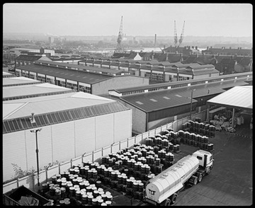 View from the roof looking south-east over new buildings in the Limeharbour area on the west side of Millwall Dock inner basin