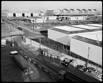 View from the roof looking north-east over new low-rise commercial developments in the ‘Enterprise Zone’ on the west side of Millwall Dock inner basin