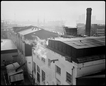 View looking south over the refinery towards the River and Deptford
