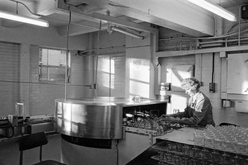 Empty jars being prepared for filling with ‘Golden Syrup’ : Ada Lowe, the Supervisor, who lived in Janet Street