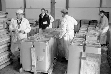 Packing brown sugar for dispatch: the younger Bender brother on the right