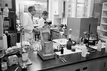 Workers in the laboratory: Geoff on the left