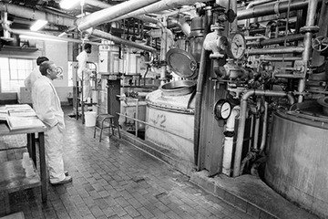 'Golden Syrup' processing plant. The man nearest the camera in glasses is Leslie Skinner. He transferred from the Silvertown factory in the early 1970s and lived, until c.1975, in Kelson House and then moved to Spinnaker House. He died in 2006