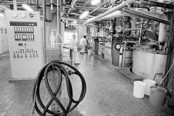'Golden Syrup' processing plant. The man nearest the camera in glasses is Leslie Skinner. He transferred from the Silvertown factory in the early 1970s and lived, until c.1975, in Kelson House and then moved to Spinnaker House. He died in 2006