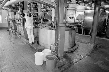 'Golden Syrup' processing plant. The operator is Leslie Skinner. He transferred from the Silvertown factory in the early 1970s and lived, until c.1975, in Kelson House and then moved to Spinnaker House. He died in 2006