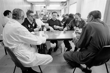 Staff canteen: from left to right, John Weston(in white); David Bray, foreman; Bill Barber; Harry Weston (John’s brother) and Stan Barns
