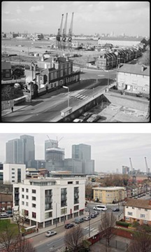 View from Alice Shepherd House, looking north-west across Manchester Road towards the West India Docks