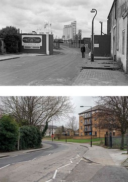 Entrance to the Clipper's Quay housing estate from East Ferry Road, looking north