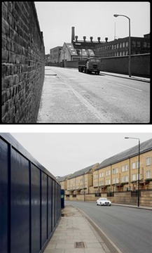 Westferry Road opposite Locke's Wharf, looking east. The St. Davids Square housing estate was built on the site of the Associated Lead Manufacturers Ltd. paint works