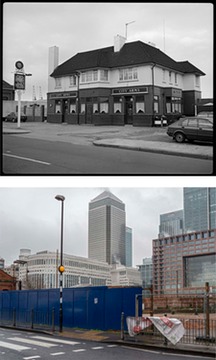 Site of the 'City Arms' pub on Westferry Road, looking north-east. Demolished in 2012, the site was still awaiting redevelopment in April 2014