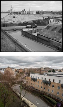 View looking east from Montrose House towards Westferry Road & Millwall Outer Dock