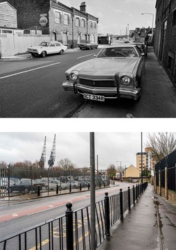 Westferry Road to the north of the old Millwall Docks entrance, looking south