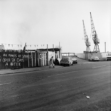 1982. Old road entrance to Millwall Dock in Westferry Road