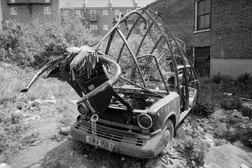 1987. Derelict site on Westferry Road next to St. Edmund's Church