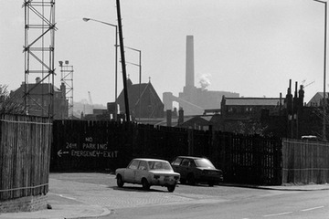 24 March 1982. The old Westferry Road entrance to Millwall Docks, looking south-east towards Deptford Power Station