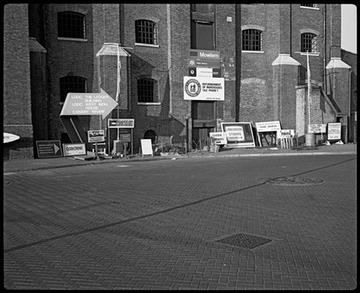 1985. Refurbishing old Sugar Warehouses on the North Quay of West India Docks in the early stages of redevelopment of the docklands area. Part of these buildings later became the Museum in Docklands