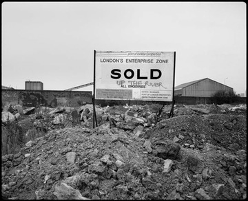1985. Land awaiting redevelopment under what would became Westferry Circus