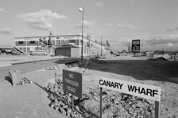 1983. View looking east along Canary Wharf shortly after the creation of the 'Red Brick Road'