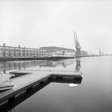1983. South West India Dock, looking north-east towards Canary Wharf before the old warehouses were demolished